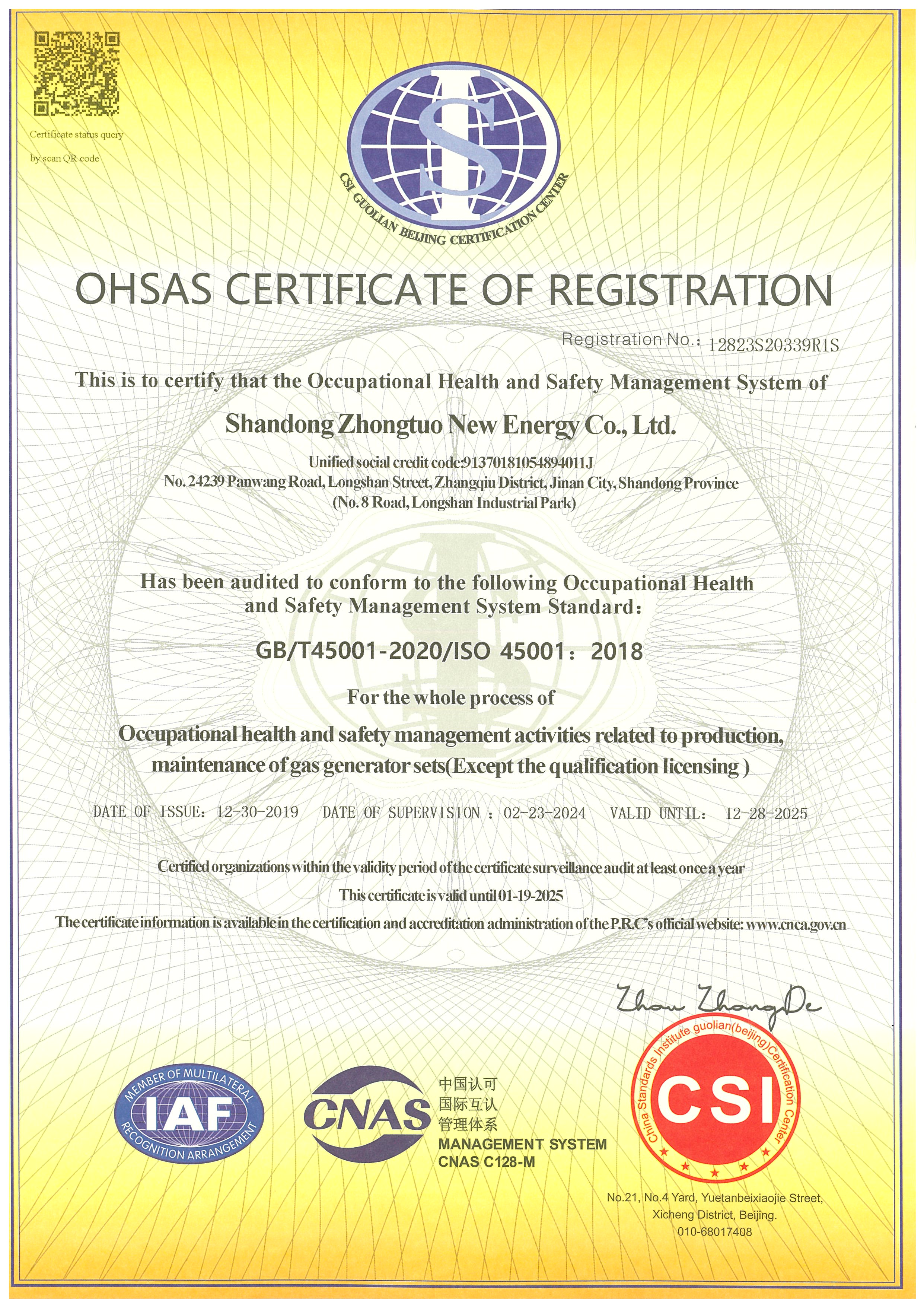 職業(yè)健康安全管理體系認(rèn)證證書(shū)